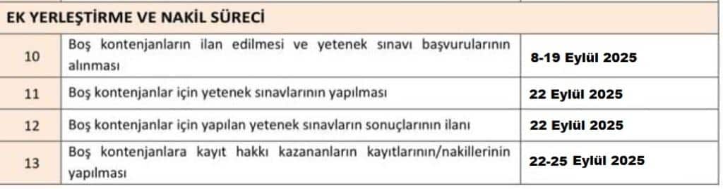 Not: Yetenek sınavı başvuruları belirtilen çalışma takviminde belirtilen tarihler arasında veli tarafından bireysel olarak e-Okul üzerinden yapılacaktır.